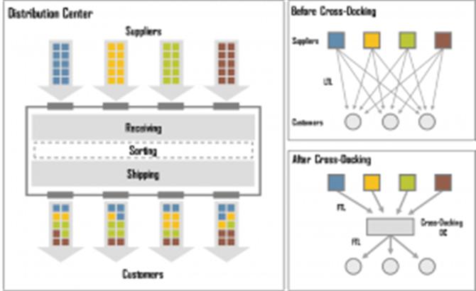 Thứ hai: Đối với 1 số nhà bán lẻ khác hay các nhà vận tải chuyên chở hàng nhỏ, lẻ thì Cross Docking được coi là một bí quyết làm giảm các chi phí vận tải. Ví dụ, các cửa hàng bán lẻ có khả năng nhận lô hàng trực tiếp từ các nhà cung cấp sử dụng dịch vụ vận tải không đầy xe (LTL) hay theo từng lô hàng lẻ. Tuy nhiên, điều đó khiến cho chi phí vận tải hàng hóa đầu vào gia tăng quá mức (do số lượng phương tiện cao kéo theo sự gia tăng của các chi phí như xăng dầu, chi phí sửa chữa và nâng cấp phương tiện, chi phí nhân công…). Cross Docking là cách để gom các lô hàng nó lại với nhau nhằm đạt một số lượng phương tiện nhất định nhằm làm giảm chi phí vận tải đầu vào và dễ làm hóa việc nhận hàng tại các cửa hàng bán lẻ.