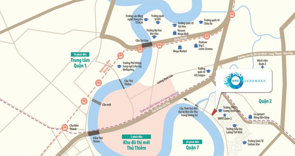 Theo công ty bất động sản dự án căn hộ tại Quận 2 là một trong những dự án nhận được sự ủng hộ của rất nhiều khách hàng trong và ngoài giới bất động sản. Bởi One Verandah tọa lạc tại vị trí vô cùng thuận lợi, nằm trung tâm Thạnh Mỹ Lợi, Quận 2. Đặc biệt còn sở hữu 4 mặt tiền đường: Bát Nàn – Tạ Hiên – Nguyễn Văn Kỉnh – đường 103 ven sông nối thẳng ra đại lộ Mai Chí Thọ. Và đây chính là mấu chốt khiến nơi đây trở thành điểm đến của rất nhiều người.